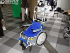 今回はMarcusや追従走行車いすなどが持ち込まれたが、初お披露目となった機体もあった。それが「全天候型自律走行車いす」だ。ベースはMarcusで、雨や雪などを避けるための天板をつけた形だ。その分若干ながら全高がアップしており、Marcusの全高1470mmに対し、10cm以上高いように見える(正確なサイズは未発表)。重量に関しては発表されており、Marcusよりも10kg重い60kgだ。原動機としては、出力が90WのDCサーボモータをふたつ搭載しているのは、Marcusなどと同じ。センサの種類も同じで、レーザーレンジファインダ、GPS、ロータリエンコーダなどを搭載している。最高時速もMarcusなどと同じで、時速6km/hだ。